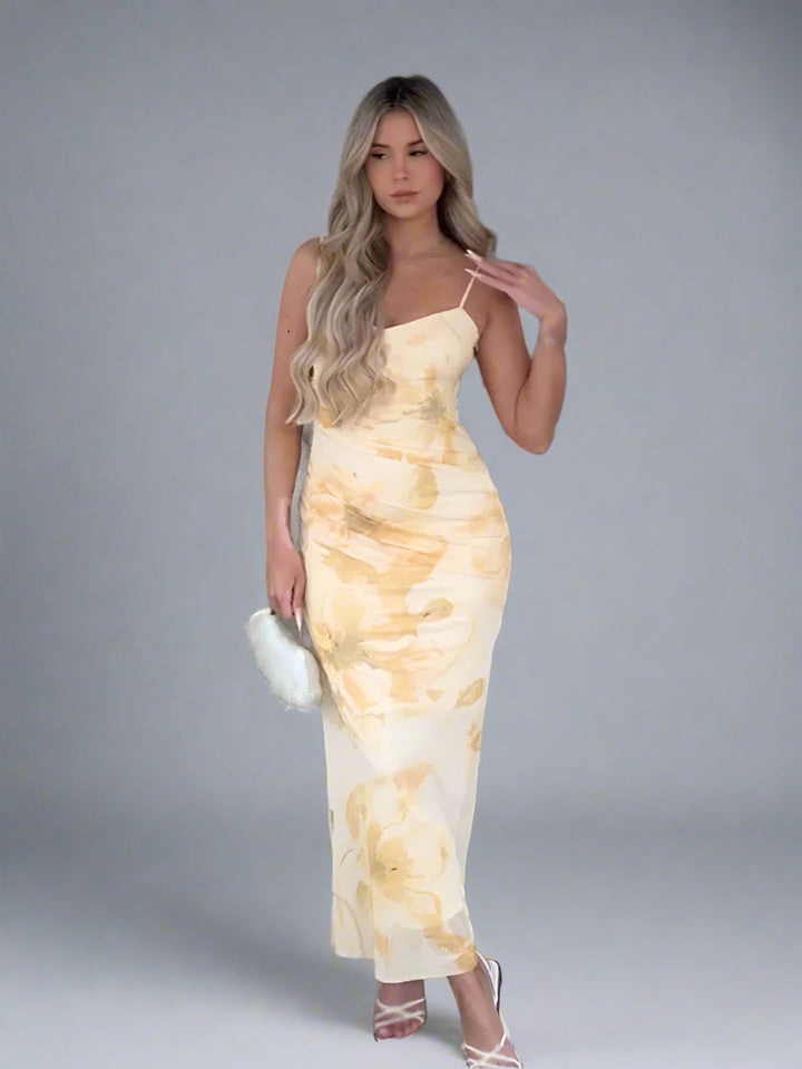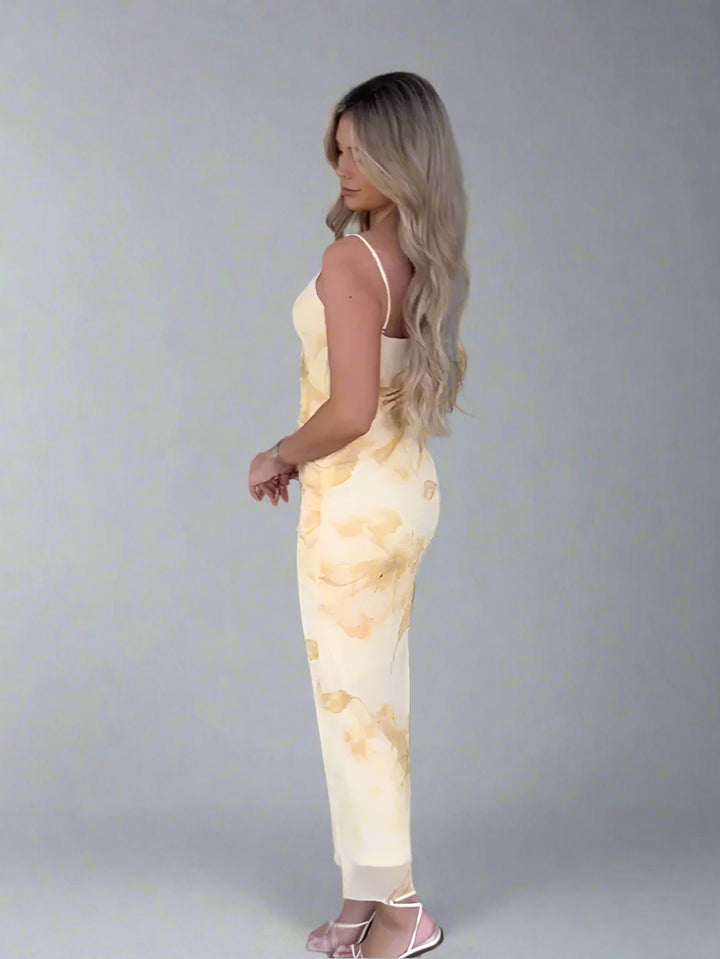 צבע: צהוב בהיר עם פרינט פרחוני